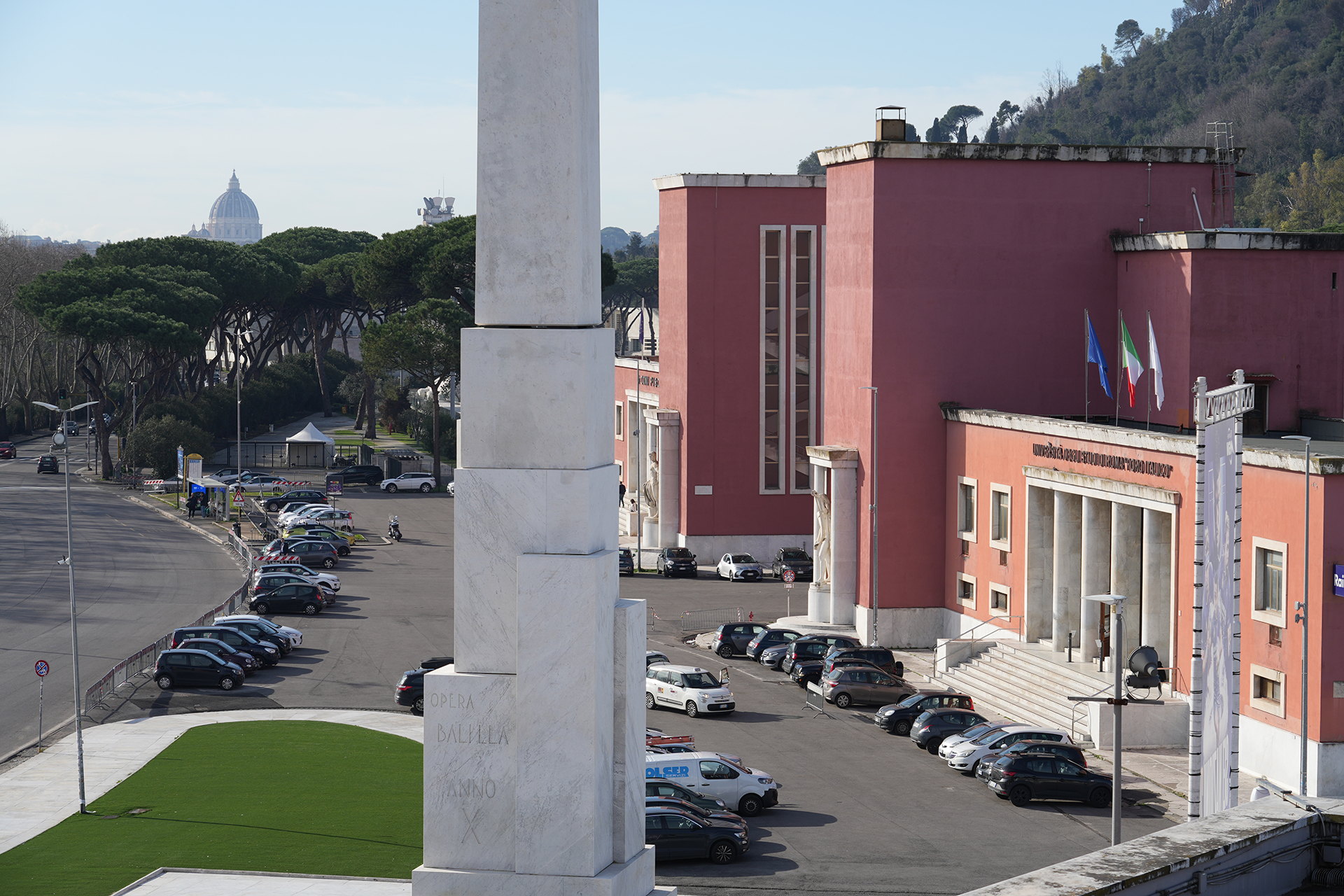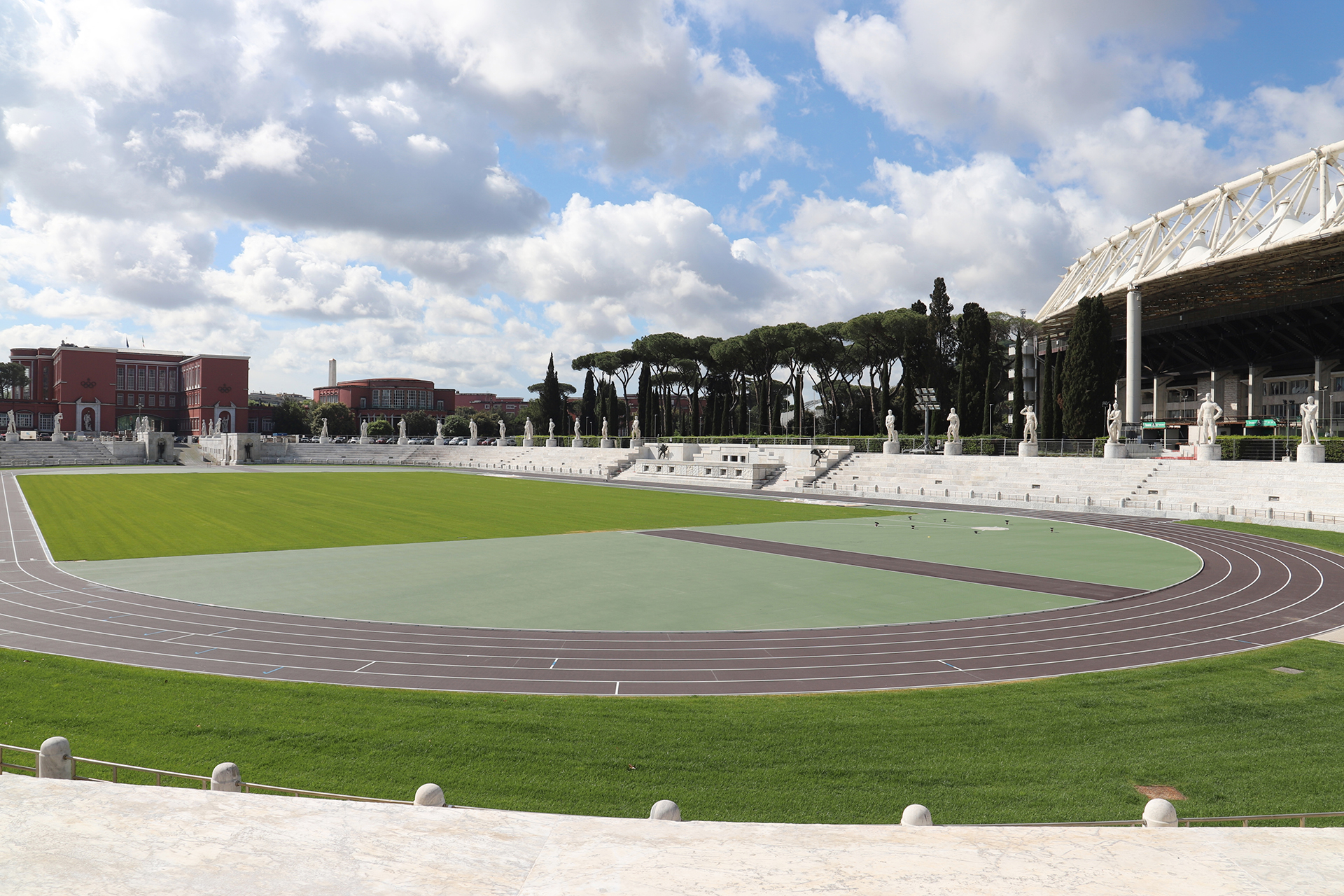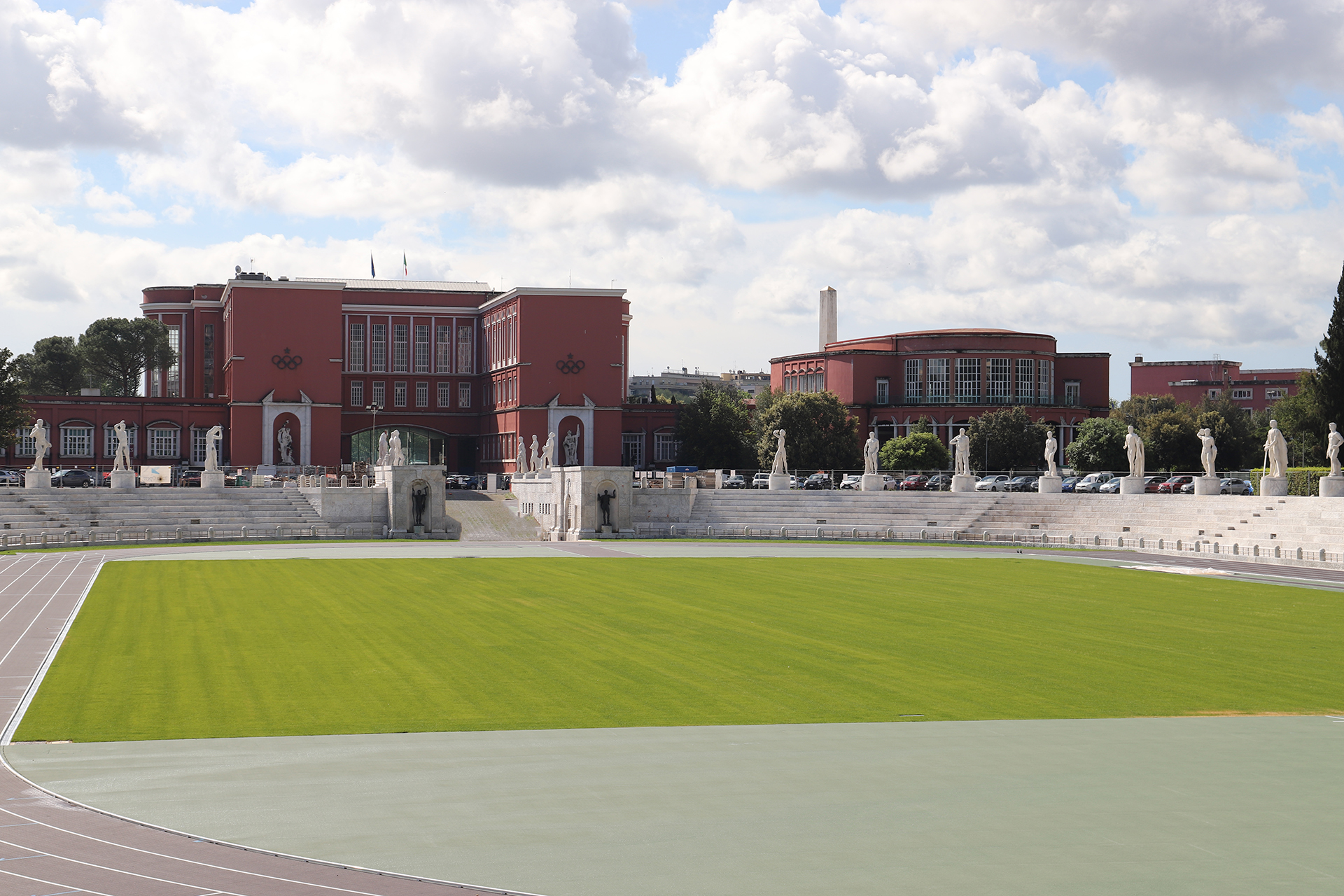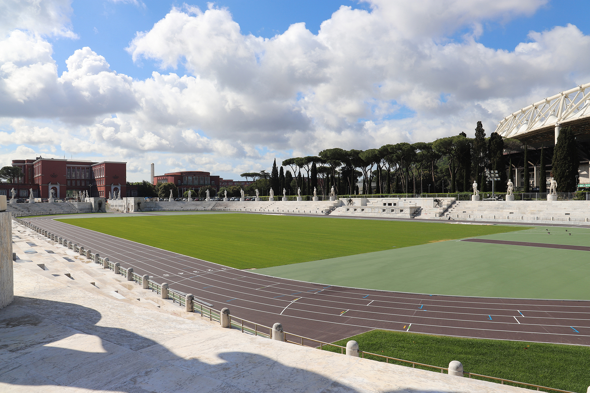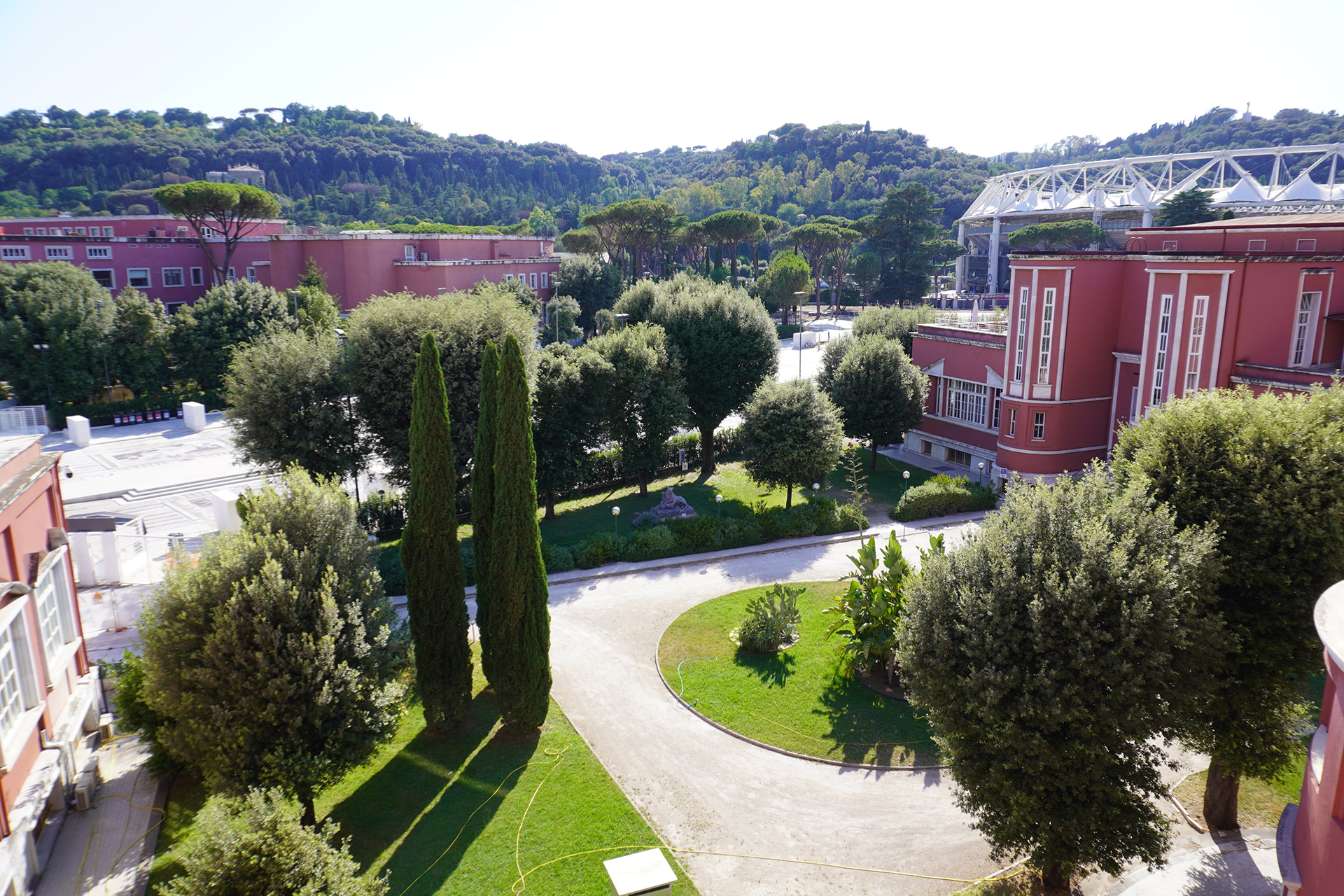 The campus is located in the green “Foro Italico” area, which overlooks the river Tiber, and stands out for its distinctive rationalist architecture from the first half of the 20th century.